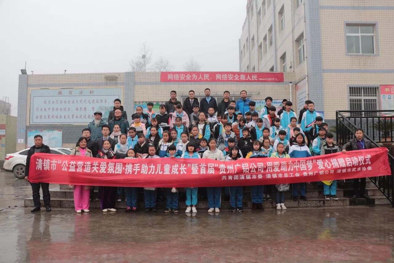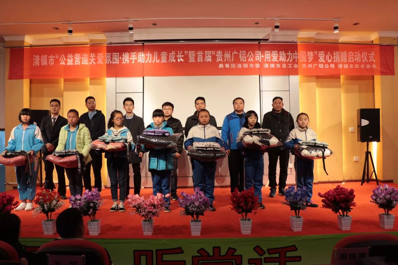 1月4日上午,共青團清鎮(zhèn)市委聯(lián)合市總工會、廣東省廣鋁公益基金會、貴州廣鋁公司、市武術(shù)協(xié)會在流長民族中學(xué),舉行清鎮(zhèn)市“公益營造關(guān)愛氛圍·攜手助力兒童成長”暨首屆“貴州廣鋁公司·用愛助力中國夢”愛心捐贈啟動儀式,為留守兒童送去溫暖。