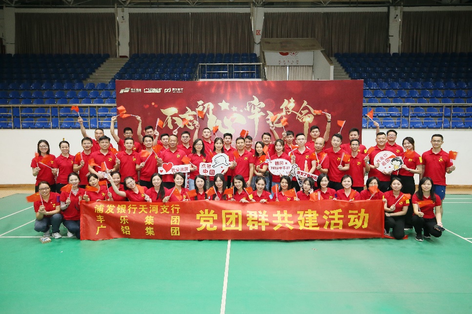 為慶祝新中國(guó)成立70周年,深入開(kāi)展“不忘初心、牢記使命”主題教育,2019年9月28日下午,廣鋁集團(tuán)黨委與浦發(fā)銀行廣州分行黨委、豐樂(lè)集團(tuán)黨委在廣東外語(yǔ)外貿(mào)大學(xué)白云校區(qū)體育館內(nèi)開(kāi)展了名為“不忘初心,牢記使命”的重走長(zhǎng)征路主題活動(dòng),三家單位合計(jì)五十多位黨員參加了活動(dòng)。