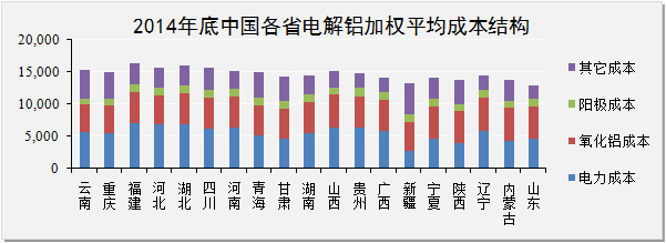 2014年我國電解鋁生產(chǎn)加權成本分析