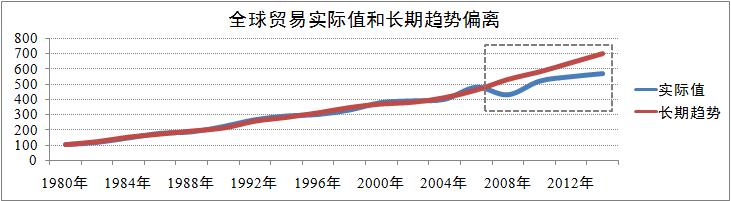 貨幣市場方面,主要經濟體貨幣政策分化加劇,全球貨幣政策總體量化寬松。自2008年國際金融危機之后,國際組織的政策協調成效并不明顯。在2014年11月舉行的二十國集團(G20)首腦峰會上,各方承諾在未來五年內將G20整體GDP由目前預測水平提高2%以上。但總體來說,具體的實施效果不容樂觀,國際貨幣基金組織和世界銀行等國際經濟組織倡導的改革則一再拖延,各國貨幣政策措施分化嚴重。美國于2014年10月份完全退出量化寬松;歐元區和日本年中以后仍在加大寬松政策力度;俄羅斯和巴西分別升息6次和5次,累計升息幅度全年達1150個和125個基點;羅馬尼亞和韓國分別降息3次和2次,累計降息100個和50個基點?,F階段,全球貨幣政策呈現出總體量化寬松的趨勢。其中,歐盟和日本主要以債券方式推行貨幣寬松措施,英國和美國通過有限升息預期維持著基本貨幣寬松,中國采取定向量化寬松政策,其他經濟體大多數采取形式各異的寬松措施。貨幣政策總體量化寬松將推動全球貿易的回暖,也將導致貿易實際值偏離長期趨勢,部分貿易實際值為匯率風險所抵消。