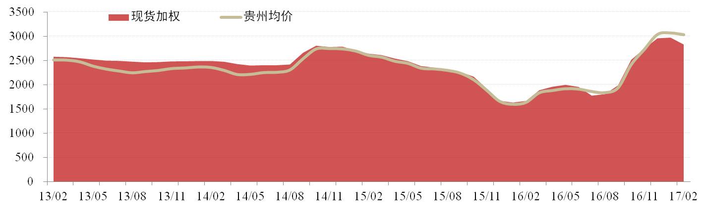 全國現(xiàn)貨價(jià)格方面,2月份成為氧化鋁價(jià)格走勢(shì)的分水嶺,氧化鋁市場價(jià)格出現(xiàn)小幅下降但主要氧化鋁企業(yè)控制力仍在,價(jià)格相對(duì)可控。全國氧化鋁現(xiàn)貨加權(quán)價(jià)為2,928元/噸,環(huán)比下降1.38%。貴州氧化鋁現(xiàn)貨加權(quán)價(jià)為3,030元/噸,環(huán)比下降1.17%。貴州地區(qū)現(xiàn)貨加權(quán)價(jià)格相對(duì)高于全國其他地區(qū)。