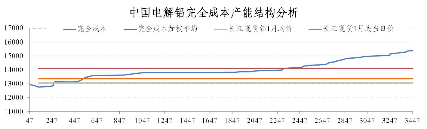 電解鋁生產(chǎn)成本方面。電解鋁生產(chǎn)成本呈現(xiàn)穩(wěn)中微降態(tài)勢(shì)。2月份全國電解鋁加權(quán)平均完全成本 13794 元/噸,較1月份上升166元/噸。2月電解鋁成本僅小幅上升,而月內(nèi)鋁價(jià)在政策指引下表現(xiàn)強(qiáng)勢(shì)。從絕對(duì)數(shù)字對(duì)比來看,電解鋁企業(yè)虧損情況本月有所緩解;完全成本來看,全行業(yè)噸鋁月均理論虧損 137元。整體來看,電解鋁企業(yè)成本有回落的趨勢(shì)。據(jù)了解,目前山東鋁企外購煤炭價(jià)格已經(jīng)出現(xiàn)明顯下滑,對(duì)自備電廠企業(yè)成本影響顯著,加之氧化鋁調(diào)整趨勢(shì)不改,預(yù)計(jì)3月電解鋁企業(yè)整體成本將下降。