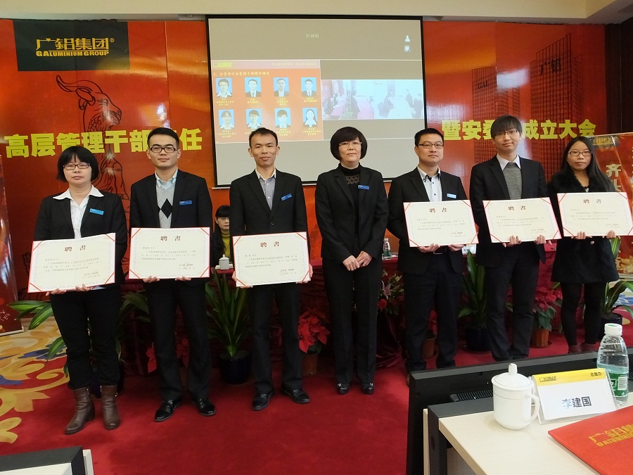 會議上,集團公司高層領導對集團本部15名中層管理干部及主持部門工作的助理級管理干部頒發了2015年度任職資格聘任證書。首先,由集團董事、常務副總裁黃丹華為總裁辦中層管理干部頒發了聘書;隨后,結算部總經理助理李漢香為結算部中層管理干部頒發了聘書;最后,董事會秘書長、副總裁兼企管部總經理曾麗娜為企管部中層管理干部及主持部門工作的助理級管理干部頒發了聘書。貴州鋁業公司、貴州礦業公司董事長葉永標代表為貴州鋁業公司財務處及人資處共2名管理干部頒發了聘書。