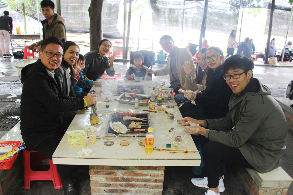 當食物擺滿桌面,各位燒烤達人已經摩拳擦掌,迫不及待想要一展身手。各位吃貨也被彌漫周圍的烤肉香引得口水直流。一串串烤肉、一塊塊雞腿,更有肥美無比的生蠔,不僅消除了大家一周工作中的疲勞,也在美味中拉近了大家的距離。