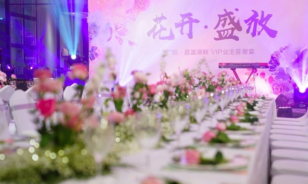 家居大變身活動啟動儀式圓滿結(jié)束后,荔富湖畔售樓部迅速變身媲美網(wǎng)紅拍照打卡地的大花園,“花開·盛放”VIP業(yè)主答謝宴隆重開席。